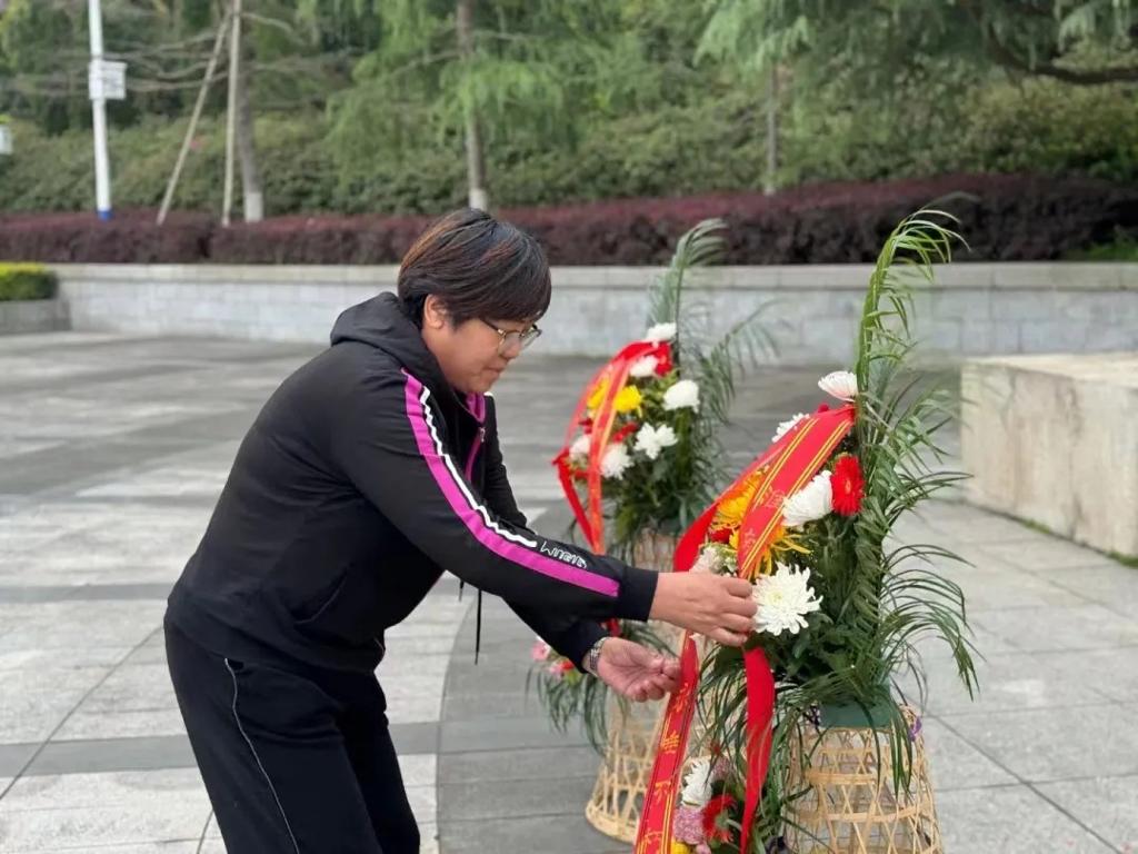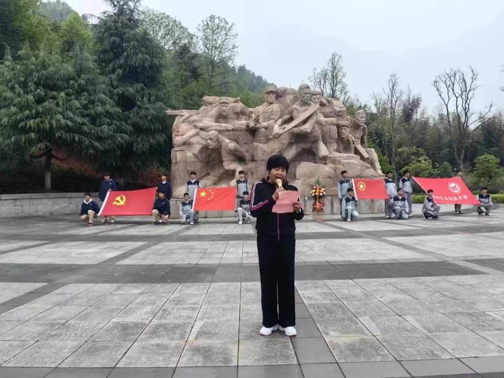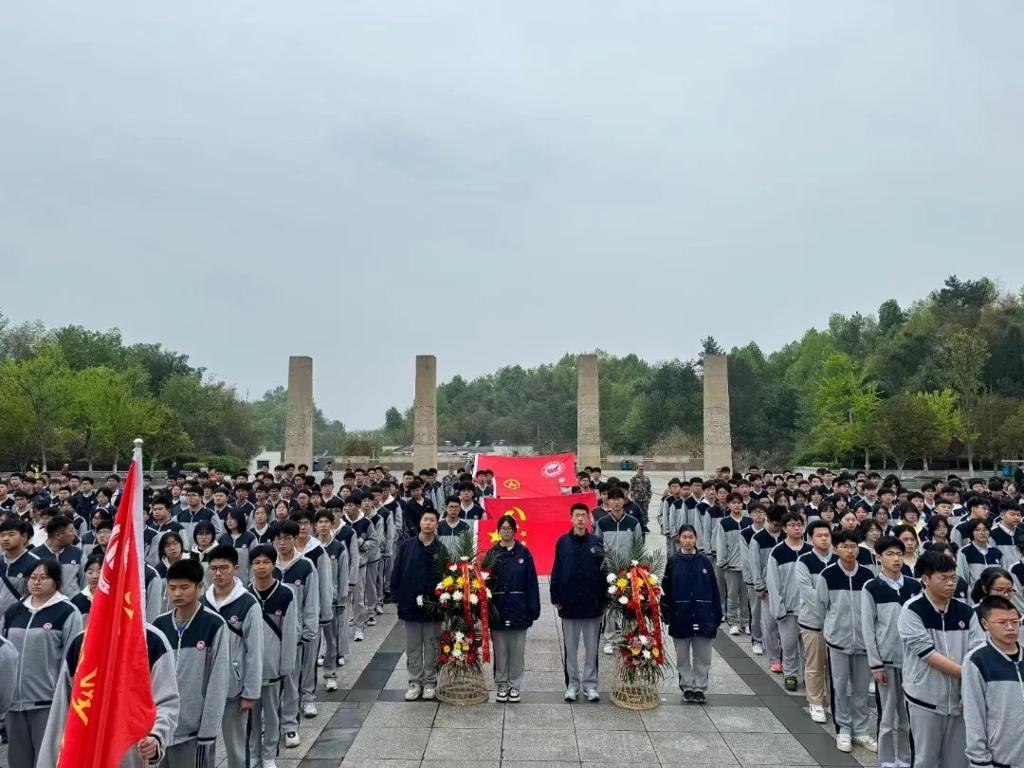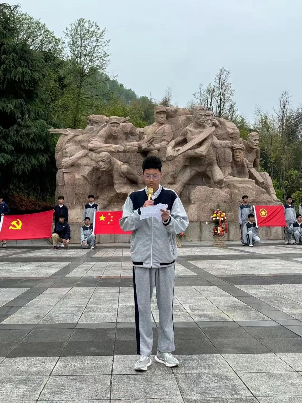 緬懷革命先烈,賡續(xù)紅色血脈。4月7日上午10時(shí),研學(xué)隊(duì)伍走進(jìn)大別山區(qū)的紅色革命紀(jì)念園、安徽省愛國(guó)主義教育基地霍山紅源廣場(chǎng)舉行緬懷先烈儀式。廣場(chǎng)莊嚴(yán)肅穆,蒼松翠柏掩映著烈士紀(jì)念碑。在全體齊唱國(guó)歌后,由學(xué)生代表向烈士進(jìn)獻(xiàn)花籃。接著胡敏校長(zhǎng)細(xì)心整理花籃綬帶并發(fā)表講話。胡敏校長(zhǎng)在紀(jì)念碑前講述先烈故事,號(hào)召全體學(xué)生堅(jiān)定理想信念,努力學(xué)習(xí),傳承紅色精神、賡續(xù)先烈革命意志。朱冠佳同學(xué)作為學(xué)生代表,發(fā)出“先烈回眸應(yīng)笑慰,擎旗自有后來(lái)人”的青年之聲。最后全體學(xué)生向烈士紀(jì)念碑三鞠躬表達(dá)追思。