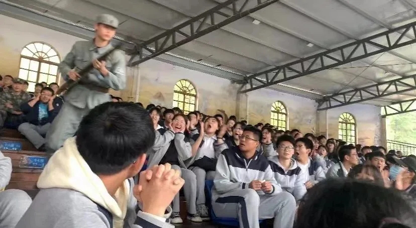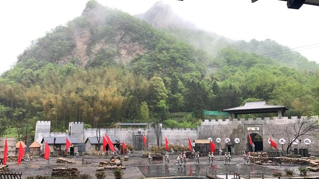 4月8日下午,研學(xué)團(tuán)隊(duì)來(lái)到了六萬(wàn)情峽觀看了大別山實(shí)景演出《大別山傳奇》。該劇結(jié)合當(dāng)?shù)卣鎸?shí)抗戰(zhàn)故事——鹿吐石鋪大捷,輔以藝術(shù)加工創(chuàng)作、現(xiàn)代科技手段,向師生們還原了當(dāng)年悲壯的抗戰(zhàn)故事和緊張激烈的戰(zhàn)斗情節(jié)。真實(shí)的歷史事件成為了鮮活的教材,學(xué)生們跟隨著扣人心弦的劇情重溫激情歲月,感悟家國(guó)情感。當(dāng)炮火燃起、硝煙彌漫,呼嘯而來(lái)的飛機(jī)、沖鋒號(hào)的聲音響起,英勇的新四軍與城民團(tuán)結(jié)一致、共同抗擊日本侵略者,觀看者仿佛回到了那個(gè)艱難的時(shí)代。當(dāng)鮮艷的紅旗漫山飄揚(yáng),勝利的歡呼聲響徹山谷,全場(chǎng)歡呼沸騰,掌聲雷動(dòng)。